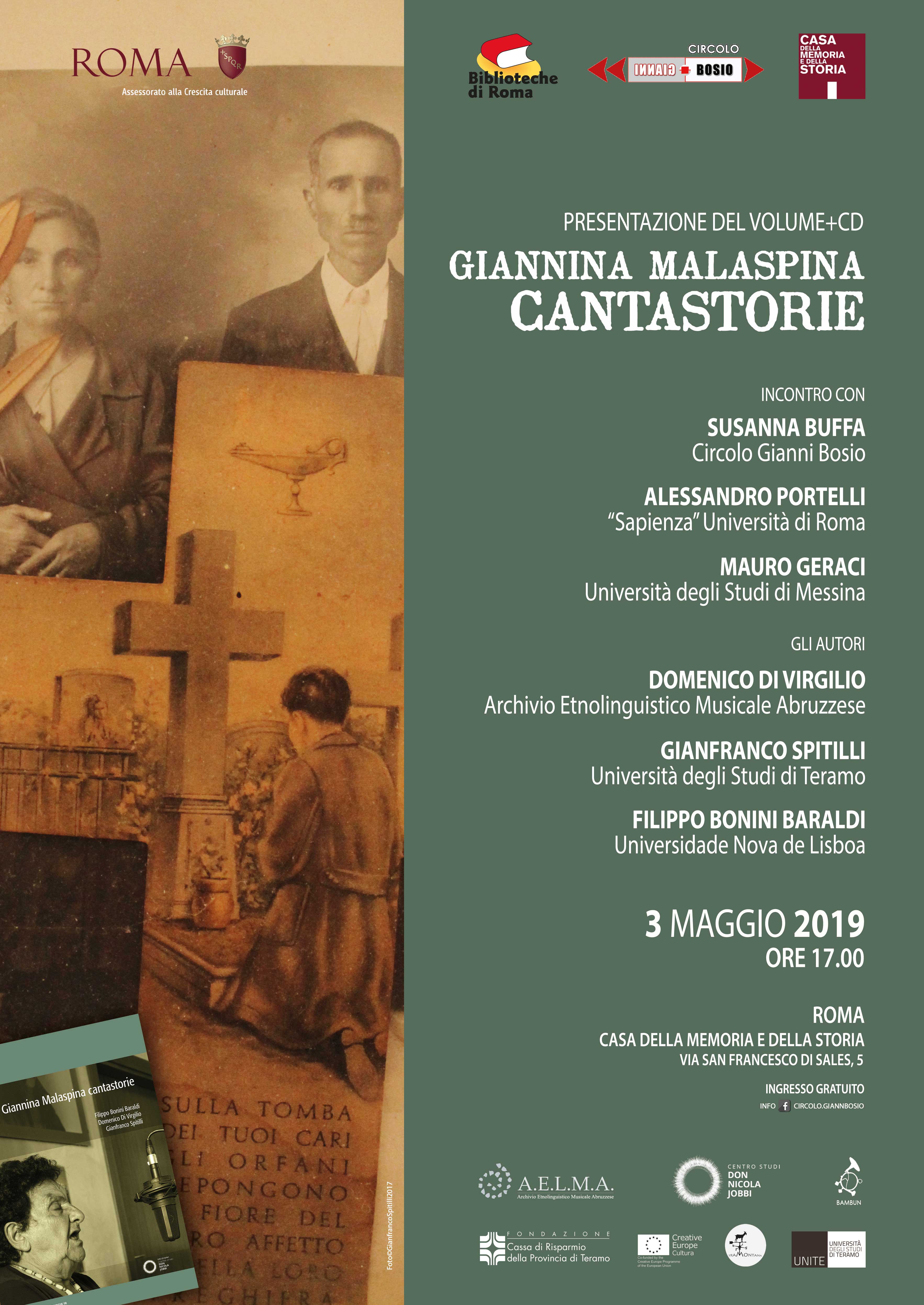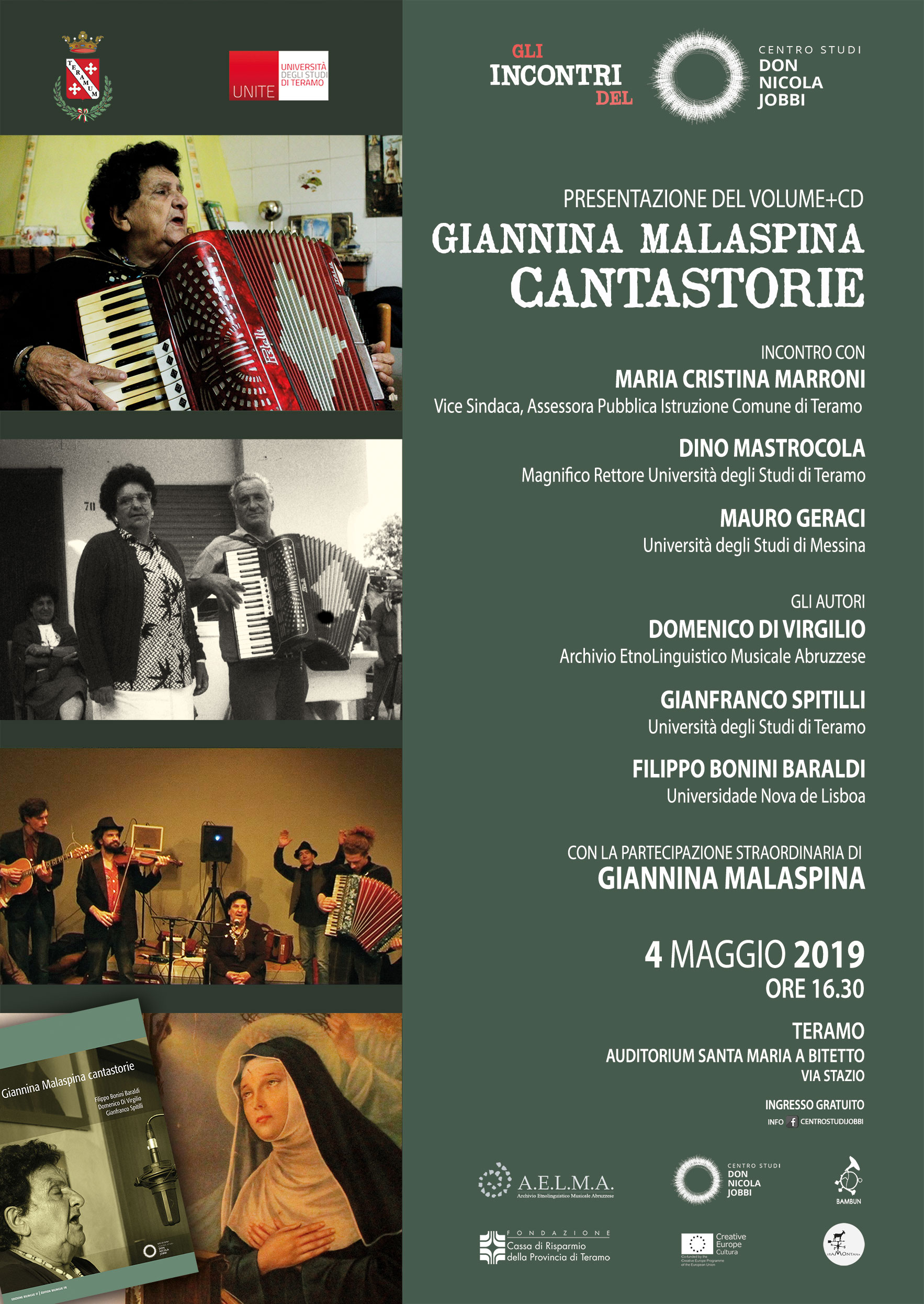 Incontro con: Maria Cristina Marroni (Vice Sindaca, Assessora Pubblica Istruzione Comune di Teramo), Dino Mastracola (Magnifico Rettore Università degli Studi di Teramo), Mauro Geraci (Università degli Studi di Messina), gli autori Domenico di Virgilio (Archivio Etnolinguistico Musicale Abruzzese), Gianfranco Spitilli (Università degli Studi di Teramo), Filippo Bonini Baraldi (Universidade Nova de Lisboa), con la partecipazione straordinaria di Giannina Malaspina